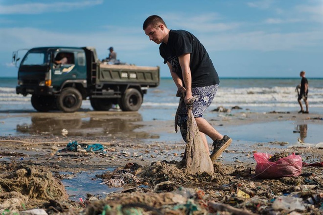 According to Nguyen Gia Tu, a local man, volunteers were divided into two groups to collect rubbish alogn the beach.