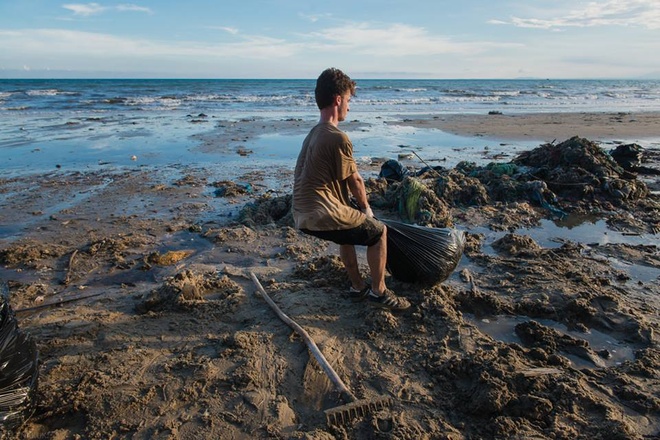 After posting photos of a beach in Mui Ne (Phan Thiet) flooded with rubbish on her Facebook, a Russian tourist named Oksana Pavlova also urged people to join her to clean up the beach.