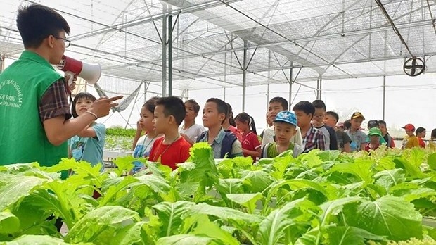 Children visit Hai Dang Farm in Thanh Tri district. (Photo: Kinhtedothi.vn)