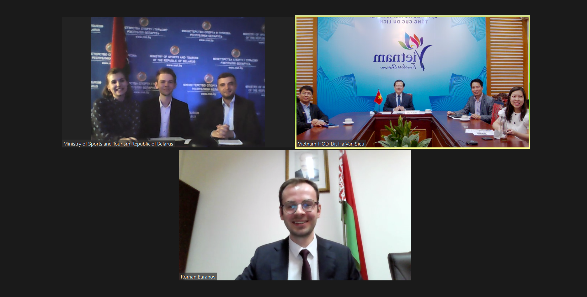 (TITC) - On August 17, Embassy of Republic of Belarus in Viet Nam and Belarusian Nation Agency of Tourism (Ministry of Sports and Tourism) held an online meeting with Vietnam National Administration of Tourism (Ministry of Culture, Sports and Tourism) on the potential for tourism cooperation between two countries. Vice Chairman Ha Van Sieu led the Vietnamese delegation to attend the meeting.