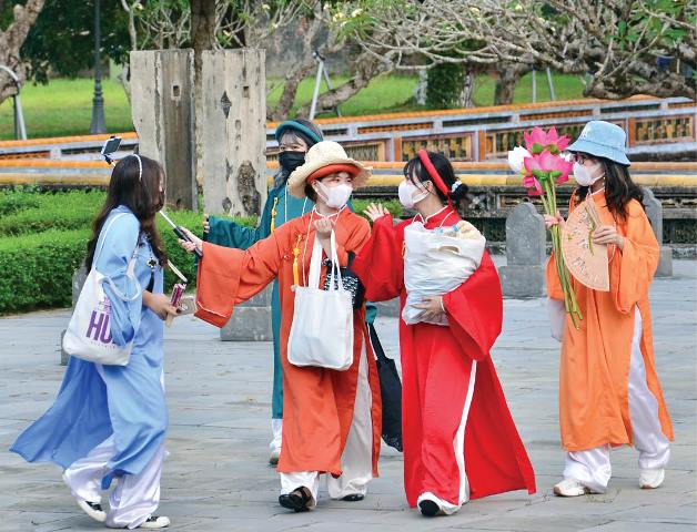 It was not difficult to spot groups of teenagers coming to Hue to take pictures in traditional ao dai inApril 2021