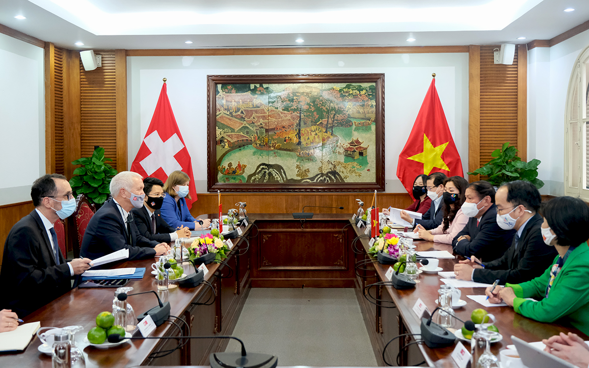 At the meeting, Ambassador Ivo Sieber thanked the Ministry of Culture, Sports and Tourism for supporting Switzerland to organize an art program to celebrate the 50th anniversary of bilateral diplomatic relations. The program "Vietnam Day in Switzerland" was held online on October 9 with many sharings from speakers who are diplomats, business men, artists, and representatives of the two countries. Music show, film footage on natural beauty, culture and people of the two countries also presented at the program.