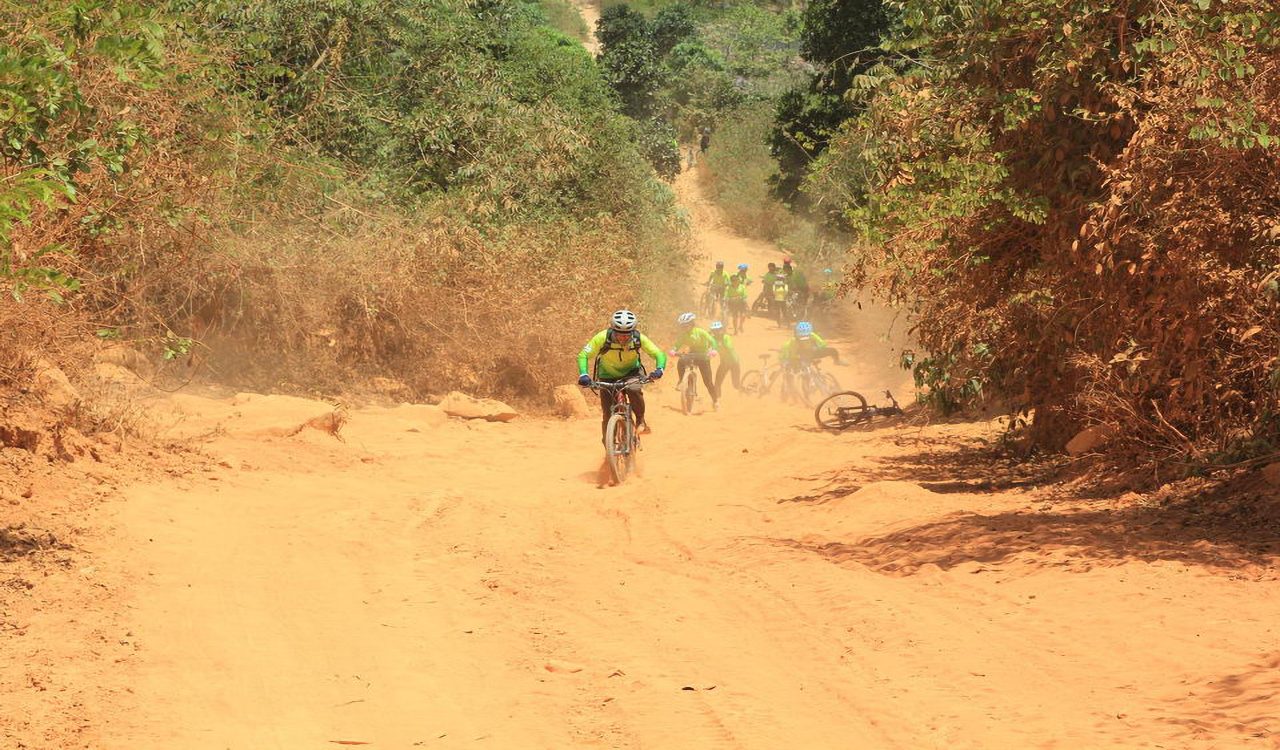 At first, we had to walk rather than cycling. However, after having been patiently accustomed to the terrain, we began to conquer slopes, one by one. Several slopes were so high that they were seemingly endless. Occasionally, we were stopped to rest on big stones.