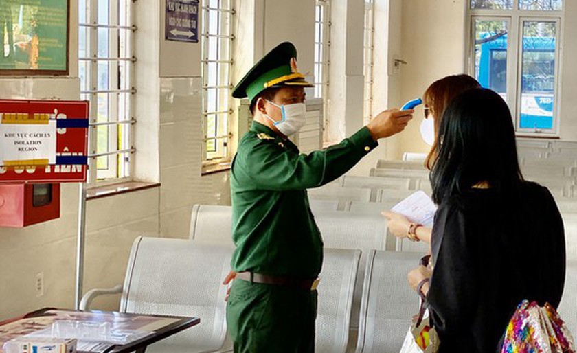 Measuring body temperature before entering Ly Son island in Quang Ngai Province