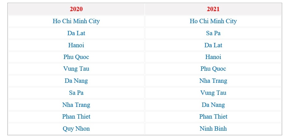 Ho Chi Minh City has maintained its position as the top destination for tourists on New Year's Eve for two consecutive years. Prominent in the ranking is Sapa, which rose from 7th place last year to 2nd place this year, pushing Da Lat to 3rd place. In addition, Ninh Binh has become a new name in the Top 10 New Year’s Eve 2022 holiday destinations because of its attractive natural beauty and many interesting experiences.