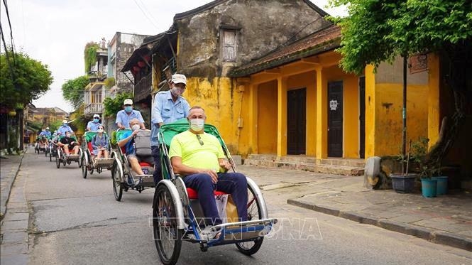 Tourists take a cyclo tour around major streets in Hoi An city, Quang Nam province. (Photo: VNA)