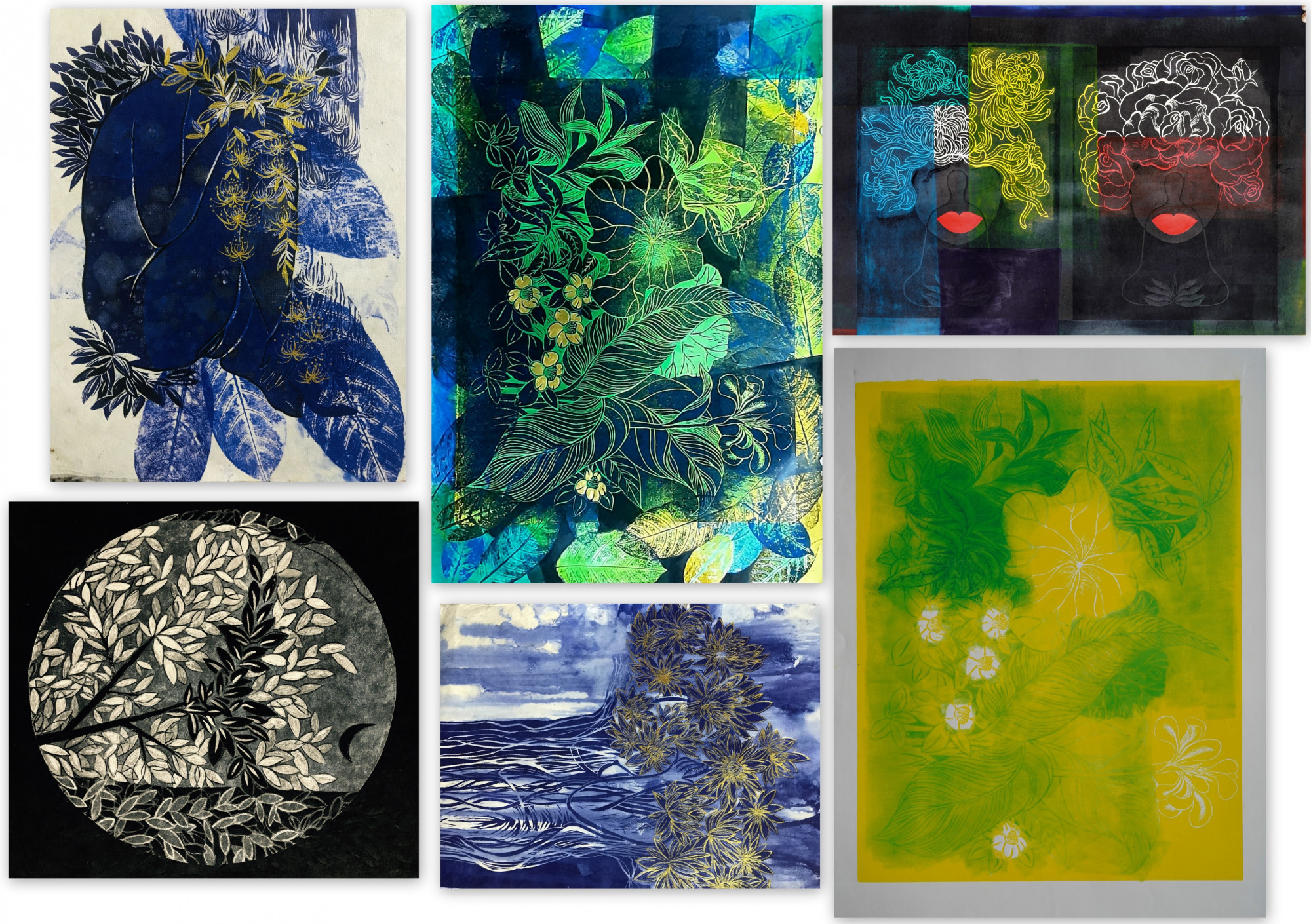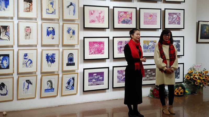 Both artists are lecturers at Vietnam Fine Arts University; Trang Thanh Hien is a lecturer at the Department of Art History, Theory and Criticism at and Nguyen My Ngoc is a lecturer at the Department of Graphics. While Trang Thanh Hien brings to the exhibition a selection of works inspired by flowers with wood carving materials, Nguyen My Ngoc's paintings find inspiration in rubber engravings combined with monoprinting. The nearly 80 graphic paintings, with trees, leaves, flowers, and hidden images of women, are lyrical, feminine and blooming in artistic creation. The exhibition will run until January 12.