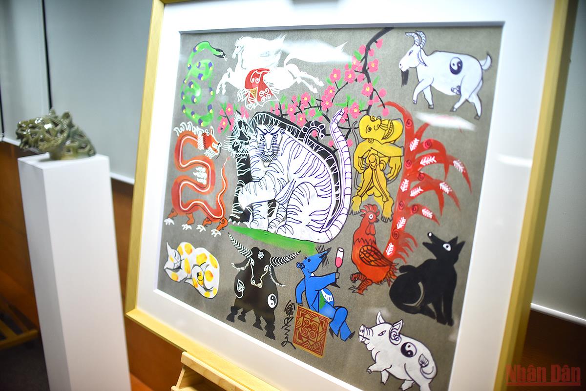 At the exhibition, several works were announced for the first time, with high applicability. The organising board also displayed a large-sized "Ngu Ho" (Five tigers) painting, which was completely hand-painted, using the traditional method of gilding.