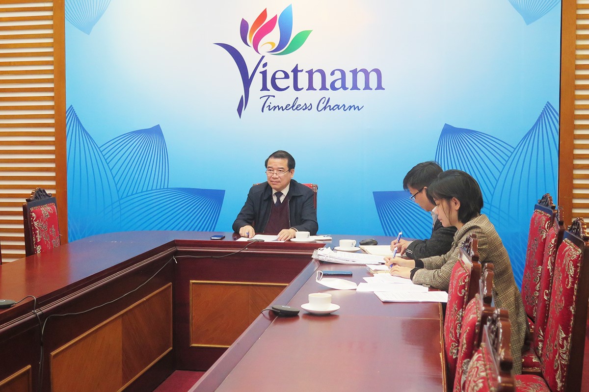 (TITC) - On 19th January, in Ha Noi, Vice Chairman Ha Van Sieu attended an online meeting with the Quang Nam Department of Culture, Sports and Tourism to discuss plans and activities in the national tourism event of Visit Vietnam Year 2022 to submit to the leaders of the Ministry of Culture, Sports and Tourism.