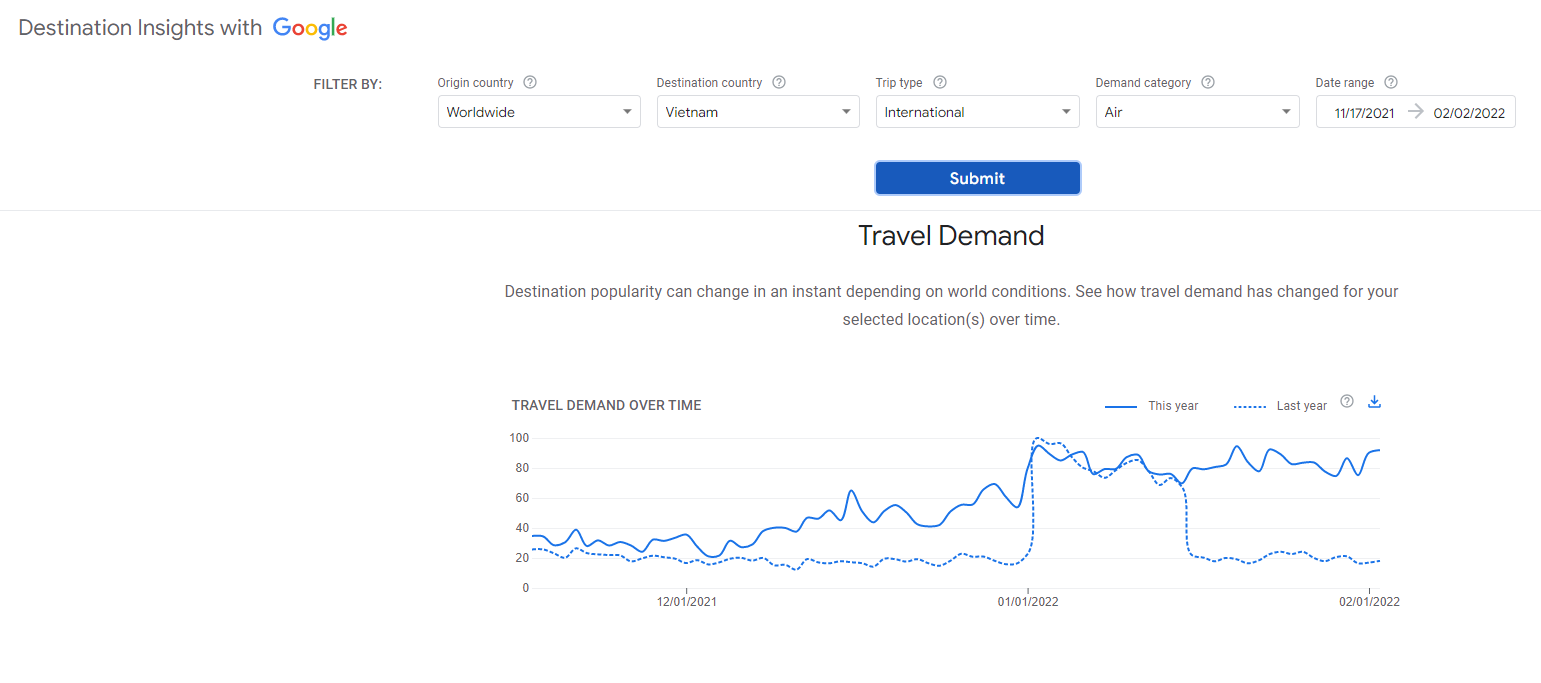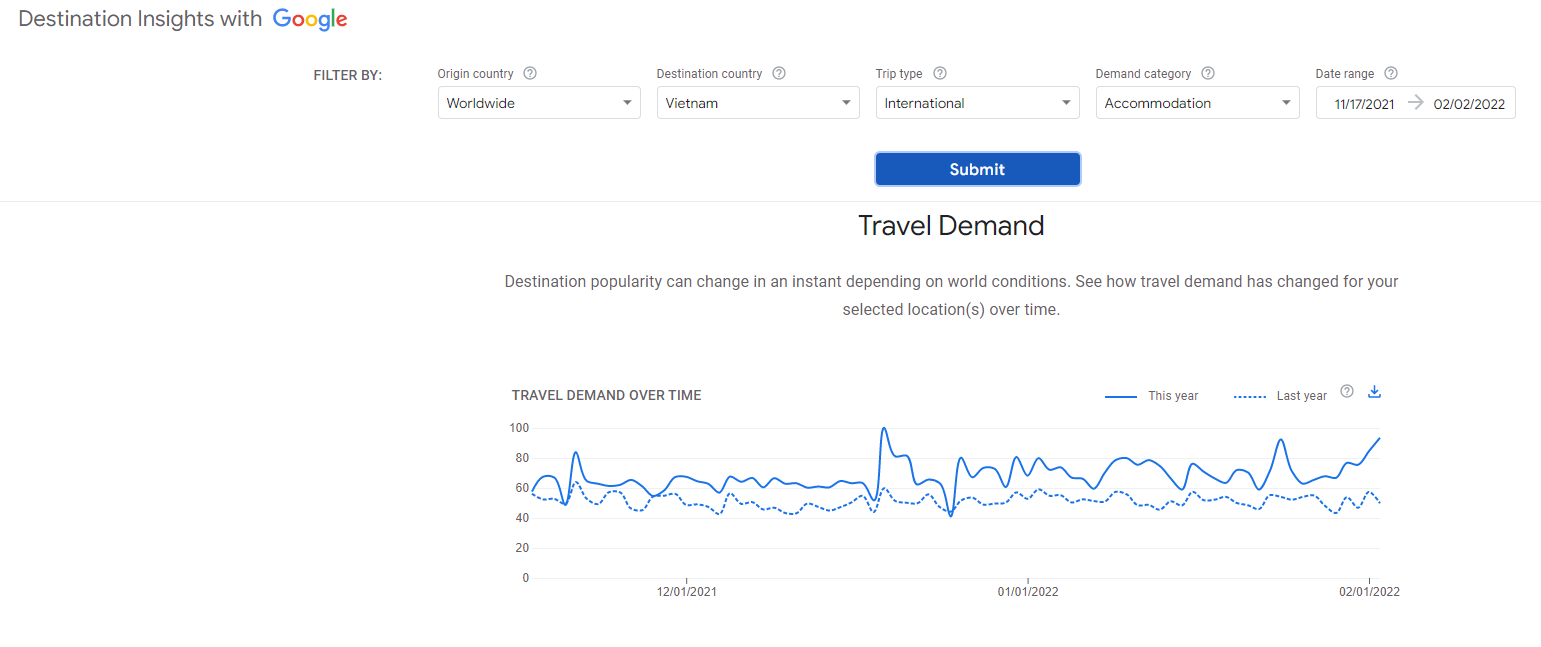 With the positive signs from the international search volume for Vietnam tourism at the beginning of 2022, hopefully that Vietnam tourism industry will be ready and take a great advantage to soon fully open international tourism and resume tourist operations in the near future.