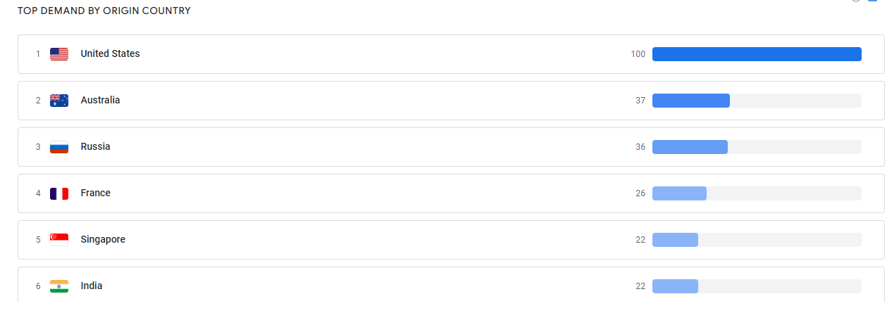 Accordingly, Google Destination Insights also points out the highest number of search volume for Vietnam tourism come from countries such as the US, Australia, Russia, France, Singapore, India, Japan, Germany, The UK, Canada…