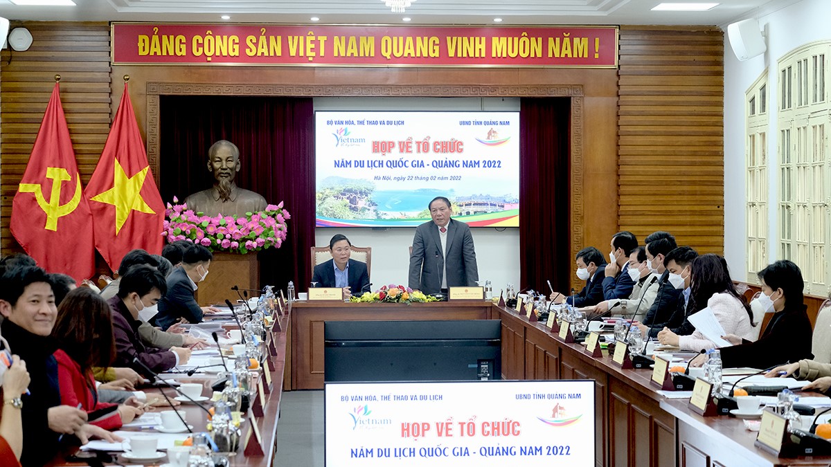 (TITC) - On 22nd February 2022, Minister of Ministry of Culture, Sports and Tourism (MOCST), Mr. Nguyen Van Hung chaired a meeting session with the People's Committee of Quang Nam Province to review the preparation of the Visit Vietnam Year 2022 under the theme “Quang Nam - A green tourism destination”.