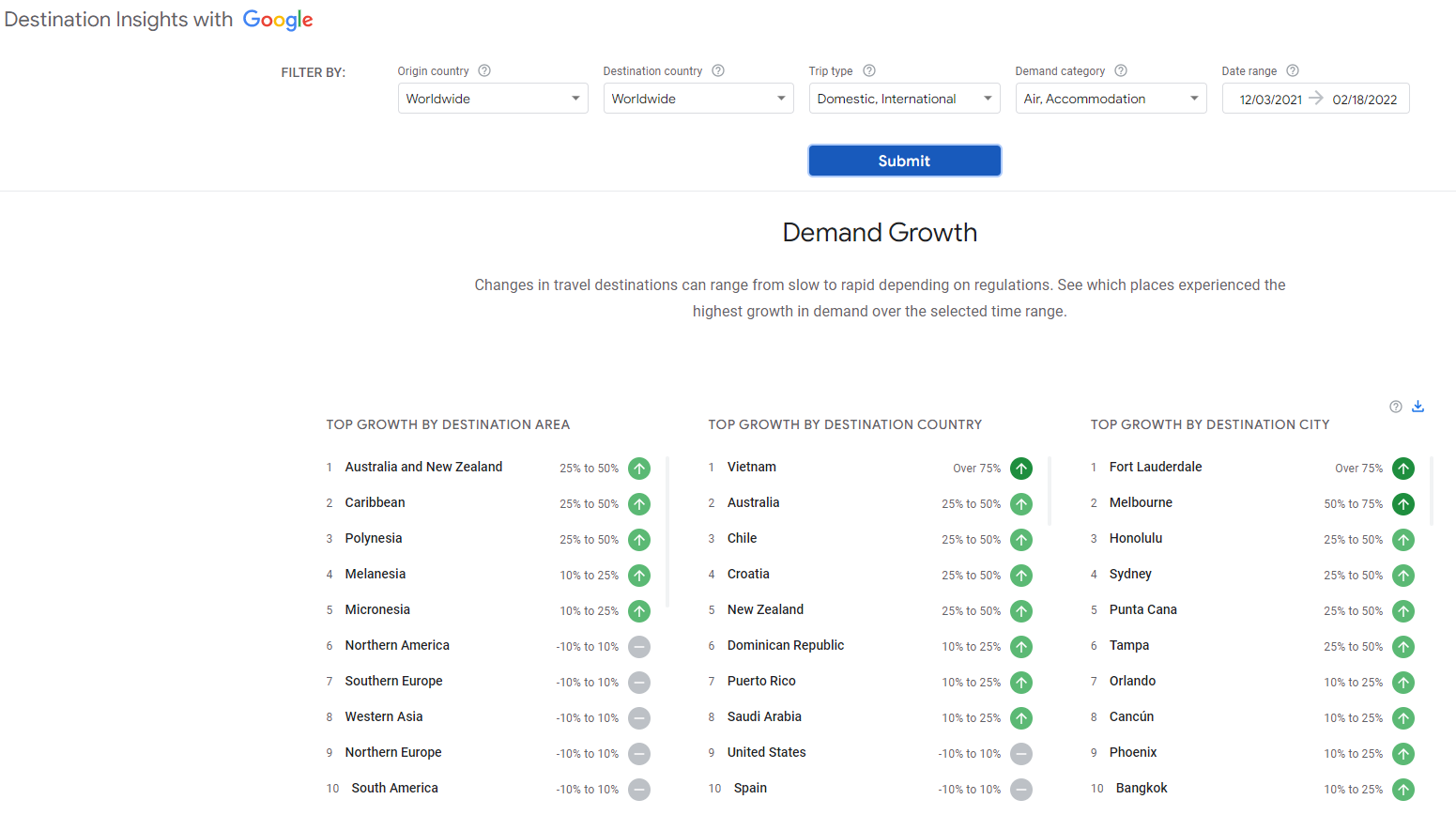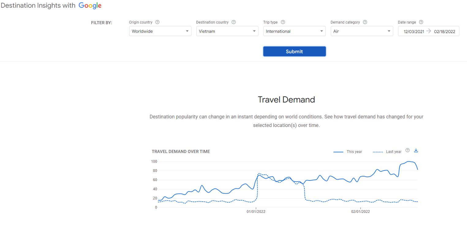 The fastest growth in both international search volume for air and accommodation for Vietnam tourism is a positive signal in the verge of the preparation to reopen from 15th March of Vietnam tourism industry. Hopefully with good preparation, tourism and aviation will seize the opportunity and regain momentum in the near future.