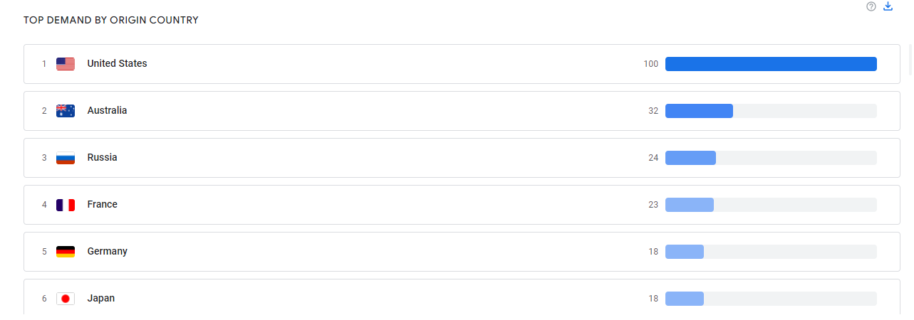 Besides, Google Destination Insights also points out the highest number of search volume for Vietnam tourism come from countries such as the US, Australia, Russia, France, Germany, Japan, Singapore, Canada, India, the UK,... (Figure 4).