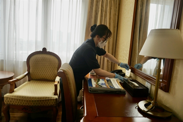 A housekeeping employee of the Grand Hotel Saigon in District 1 prepares rooms to receive guests. — VNS Photo Thu Hang