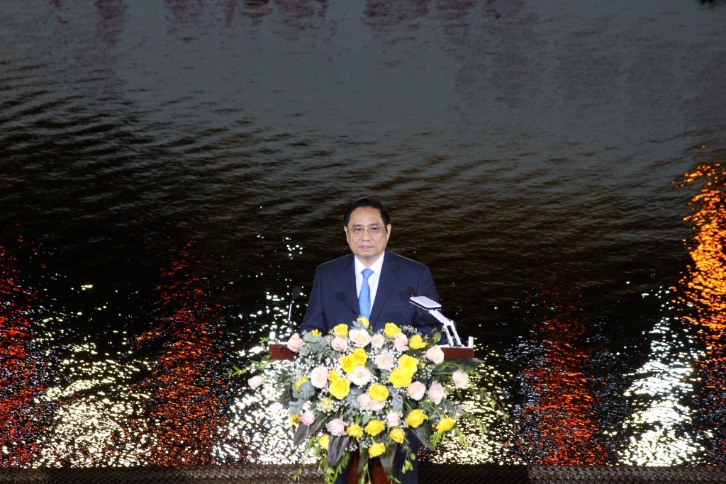 P.M. Pham Minh Chinh speaking at the ceremony. Photo: TITC