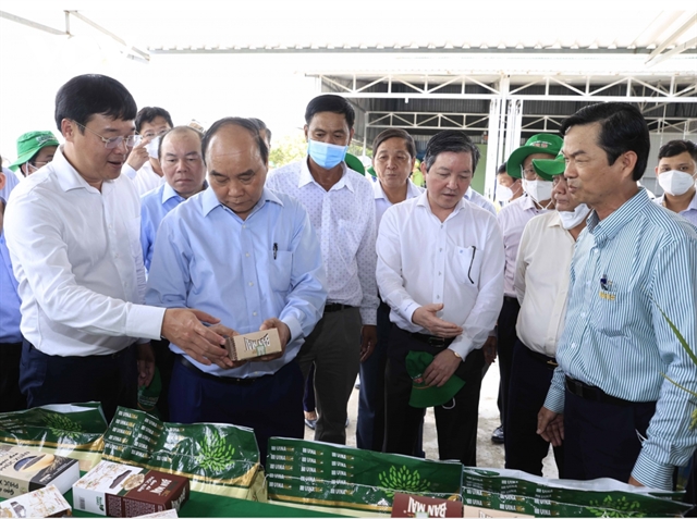 President Nguyen Xuan Phuc visits a centre displaying typical products of Dong Thap Province. VNA/VNS Photo Thong Nhat
