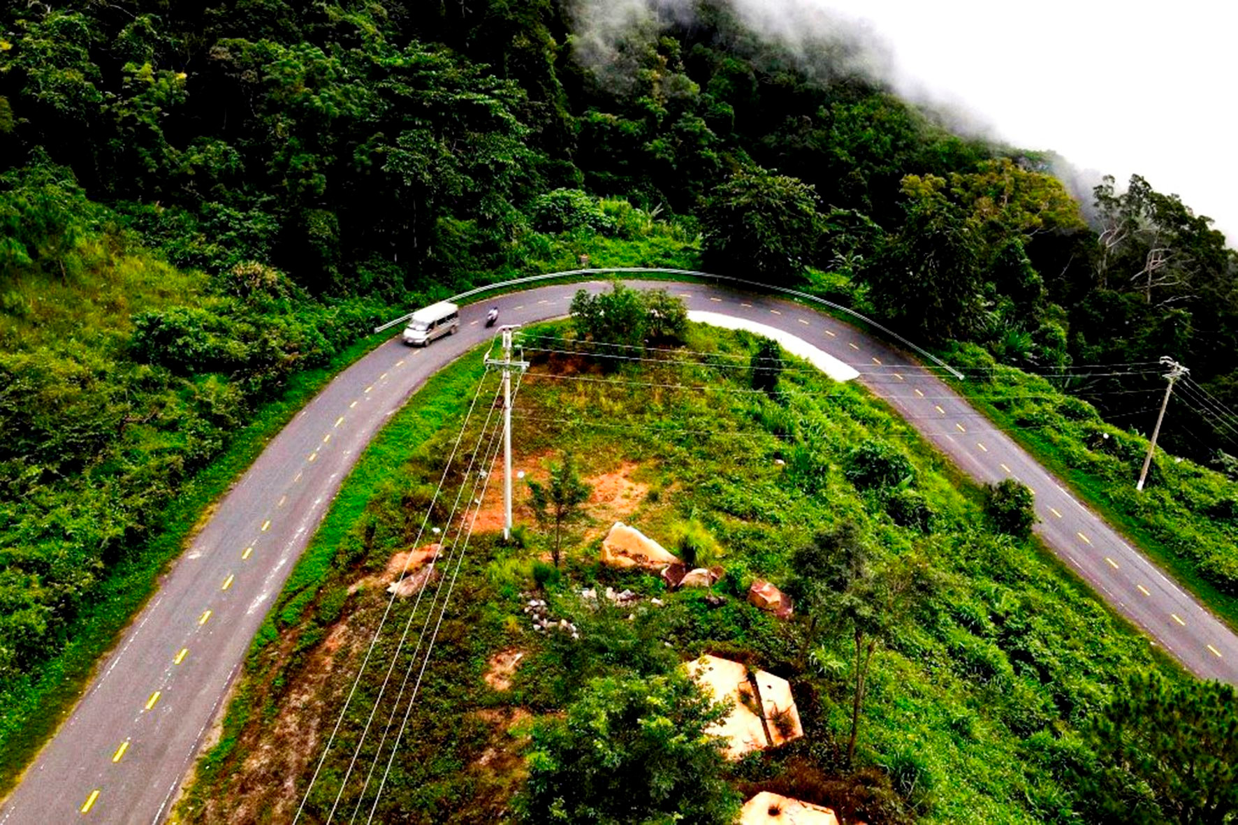 The tourists stop at the top of Dai Ninh Pass
