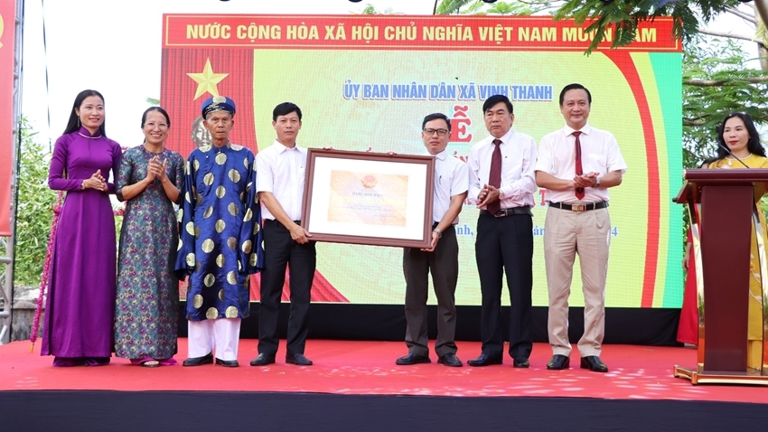 On July 11th, the People's Committee of Vinh Thanh Commune (Phu Vang, Thua Thien Hue) held a ceremony to announce the decision and receive the certificate recognizing Ha Thanh Communal House as a provincial historical site.