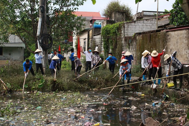 Residents in Tri Thuy commune of Phu Xuyen district, Hanoi, clean a canal near Provincial Road 428 after an environmental protection campaign launched on June 5 (Photo: VNA)