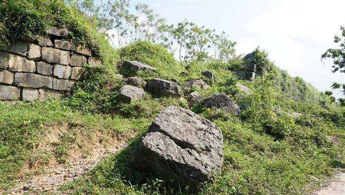 A part of the northern wall of the citadel was damaged by heavy rains in September 2017. The big stones remain far from the foot of the wall without any long-term solution implemented by concerned agencies (Photo: thanhnien.vn)