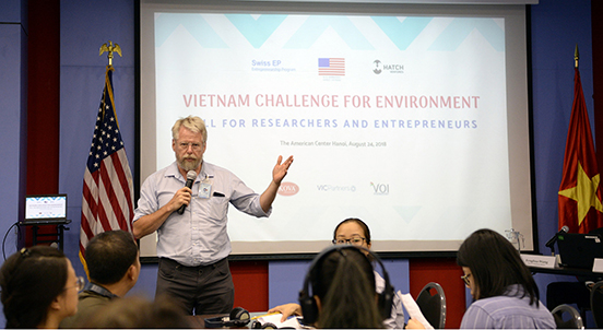 John Sechrest, founder of the Seattle Angel Conference, the Lean Startup Seattle Group delivered remarks at the opening of the “Vietnam Challenge for Our Environment”. Photo: US Embassy