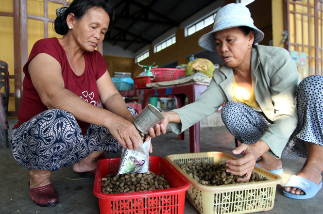 Besides issuing legal regulations, the People's Committee of Tan Hiep Commune also provides thousands of plastic baskets and ecologically- degradable bags for households and businesses on the islands. People also actively use net bags, banana leaves, taro leaves, cages, baskets from bamboo, etc., to keep food and goods. Furthermore, women, union members, and youth members in the commune also have the "idea" to use old books and newspapers to make paper bags for packaging. Tourists to Cham Islands are also reminded not to use plastic bags and provided with ecological bags and paper bags for using.