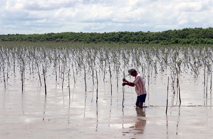 Mangroves are being planted in the coastal district of An Biên in the Mekong Delta Province Kiên Giang to fight off erosion and salt intrusion -- negative phenomena exacerbated by climate change. — VNA/VNS Photo Lê Huy Hải