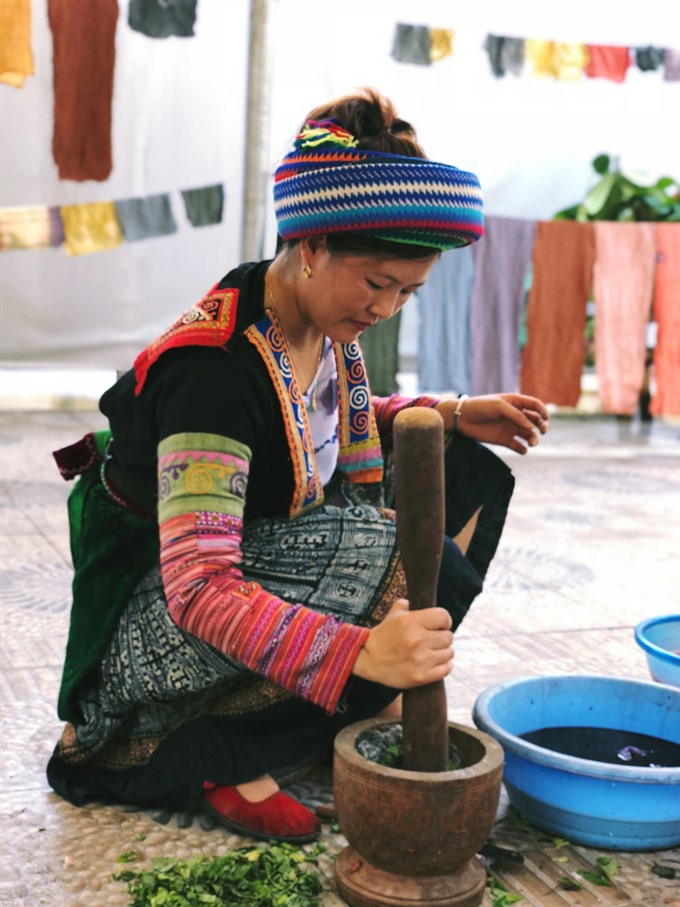 “In recent years, most ethnic groups have switched to chemical dyes and very few still maintain the traditional practice of dying fabric with indigo. Among them are Mông people who have been using various types of leaves to colour fabric. They are very clever in mixing different types of leaves to create a diverse range of colours,” said researcher Ly.