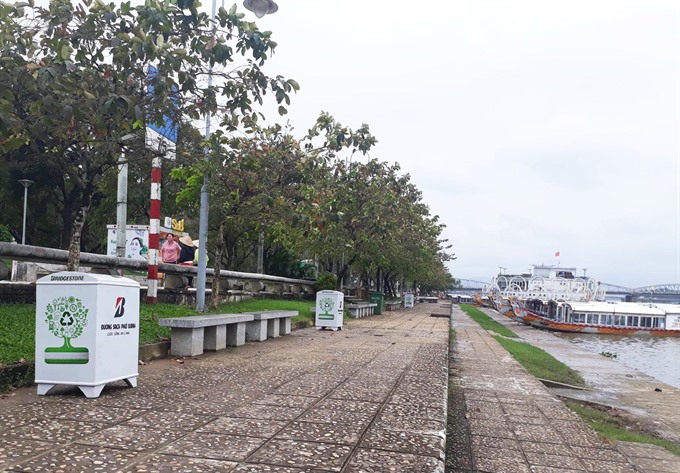 In addition, all 20 garbage bins were given with reflective decal mounted on a gray painted background to match the ancient scenery of the cultural heritage and common landscape of Hue Imperial City.