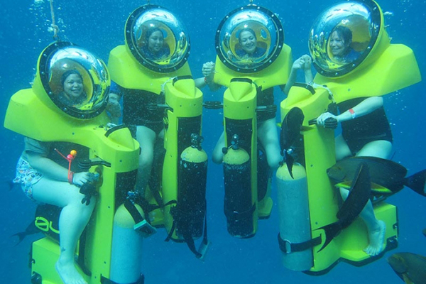 It is interesting that the visitor can enjoy watching the sea bed within a maximum time of up to 5 hours. Any tourist who first participates in this type of leisure activity is also very excited and feels surprised because controlling a motorcycle to explore the ocean which seemed impossible now becomes easy. You can see hundreds of marine species in the first place because the speed is quite low.