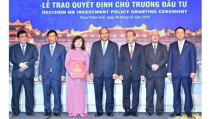 PM Nguyen Xuan Phuc (C) at the signing ceremony for a strategic cooperation agreement between Sovico and Thua Thien - Hue province on February 16, 2019.