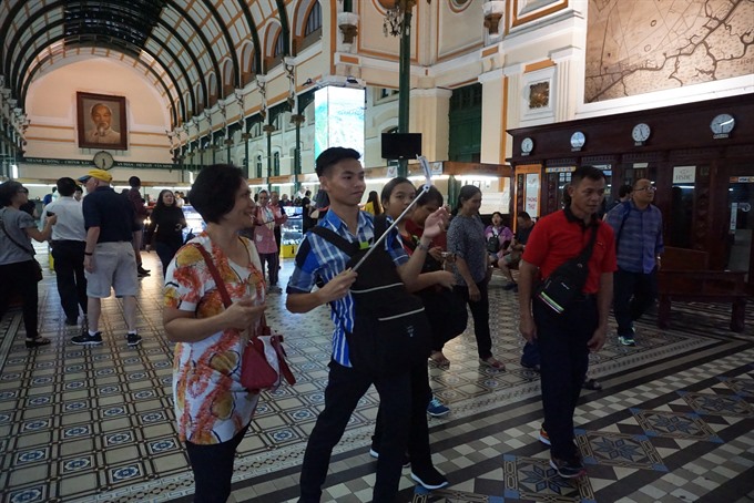 Classic design: Visitors at the Saigon Central Post Office. Photo San Hà