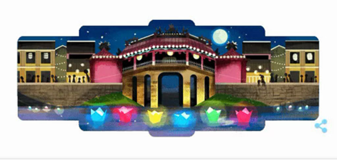 An image of Hoi An in central Viet Nam with symbols of the Chua Cau (Pagoda Bridge) and colorful lanterns became Google’s logo for the day.
