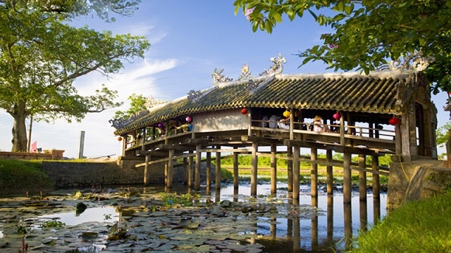 The Thanh Toan arch bridge has both sides protected by railings with balconies, crossing an irrigation canal extending from the entrance to the end of Thanh Toan village, Thuy Thanh commune, about 8km from the centre of Hue city. It has become a popular tourist destination.