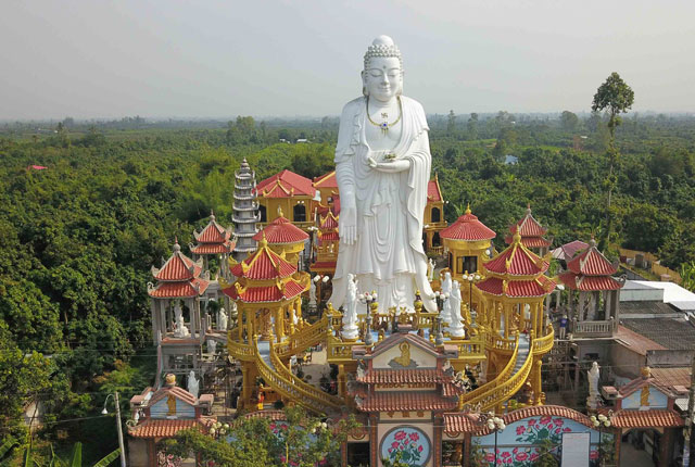 Aside from the beautiful orchards, Gieng islet is also home to century-old construction, including the islet’s church, which is said to be built in 1875, a monastery of the Franciscans, and Phuoc Thanh Pagoda, which houses a 39m-tall statue of the Amitabha Buddha.