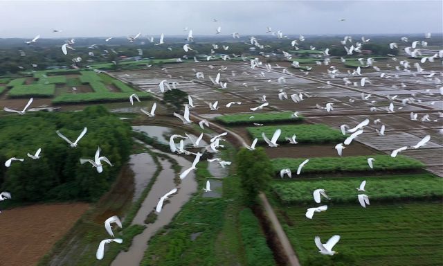 Earlier, a large amount of wild birds including flocks of while storks were seen flying along canals and paddy fields to search for food in the province.
