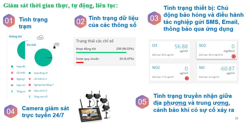 - View general statistics about stations (users can know the status of connecting or losing data connection, which stations have parameters exceeding QCVN, faulty devices...);