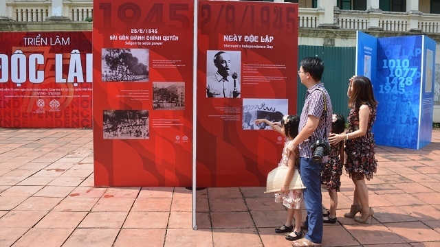 Visitors at the ‘Independence’ exhibition which opened at Thang Long Imperial Citadel in Hanoi on August 31.