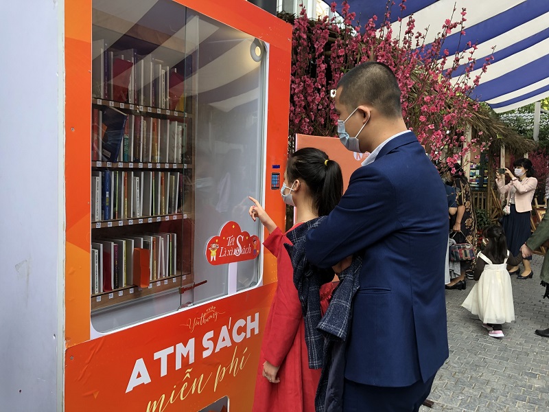 Readers at the Street will receive books at the free book ATM (book dispenser) launched by Thai Ha bookstore.