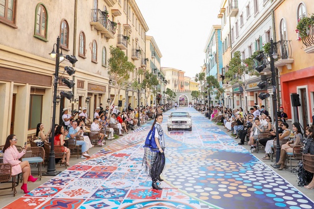 The catwalk of the Fashion Voyage show named Street Show is built entirely on a street of Sun Premier Village Primavera, with the idea of creating a silk strip over the shadow of the sunset stretching across the street (Photo: internet)