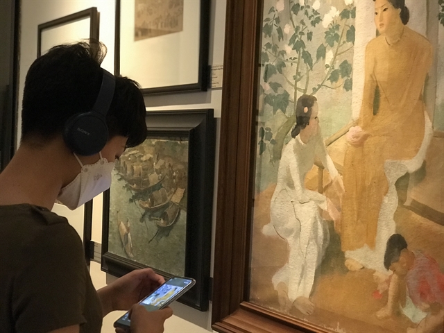 Visitors enjoy the app at the Việt Nam National Fine Arts Museum. — Photo VFA