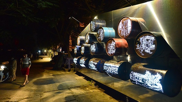 In early 2020, a group of 16 artists utilised recycled materials to transform the road along the Red River in Hoan Kiem District’s Phuc Tan Ward in Hanoi, where a lot of trash had gathered, into an eye-catching and interesting contemporary art space.