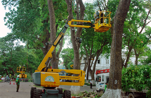 “Thành phố luôn đặc biệt quan tâm đến công tác chăm sóc, quản lý và bảo vệ cây xanh trên địa bàn” - Đó là khẳng định của ông Nguyễn Xuân Hưng với phóng viên Báo Hànộimới. Ông Hưng cho biết, thời gian qua công ty đã được trang bị 12 xe nâng các loại (1 xe 32m; 3 xe 26m; 5 xe 18m; 3 xe 16m); 2 cẩu tự hành sức nâng 10 tấn, tải trọng 27 tấn, 3 cẩu tự hành sức nâng 5 tấn, tải trọng 10 tấn; 4 máy nghiền cành cây các loại để tạo mùn sau quá trình cắt sửa cây và nhiều trang thiết bị phục vụ công tác cắt sửa cây như cưa máy của Đức, kéo cắt các loại, barie, áo phản quang, bộ đàm, kính bảo hộ..., đã tạo ra cuộc "cách mạng" trong công tác cắt sửa cây xanh trên địa bàn thành phố. Đây là thuận lợi lớn của công ty nhưng cũng đòi hỏi sự thay đổi lớn về tư duy, cách làm để đáp ứng nhiệm vụ cắt sửa cây trong tình hình mới.