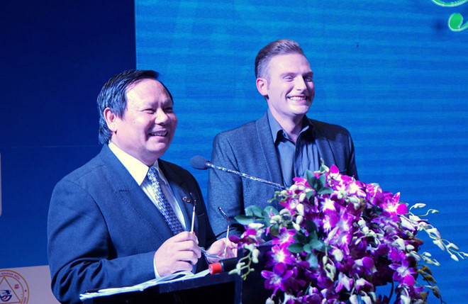 Tổng cục trưởng Tổng cục Du lịch Nguyễn Văn Tuấn, phía trái ảnh, phát biểu tại buổi trao giải.