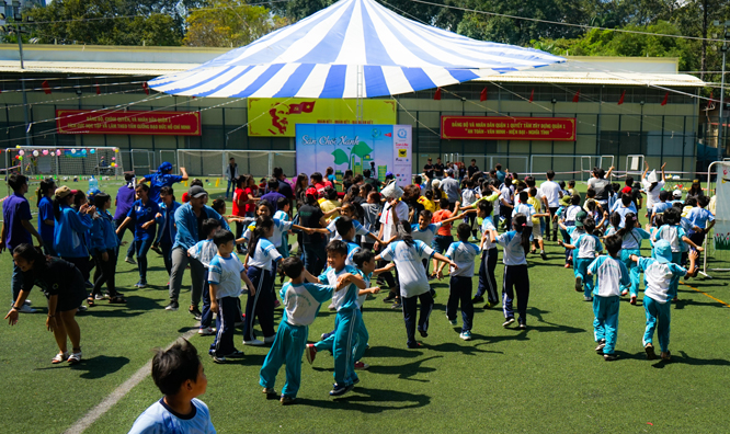 Các em nhỏ tham gia Sân chơi xanh năm 2016