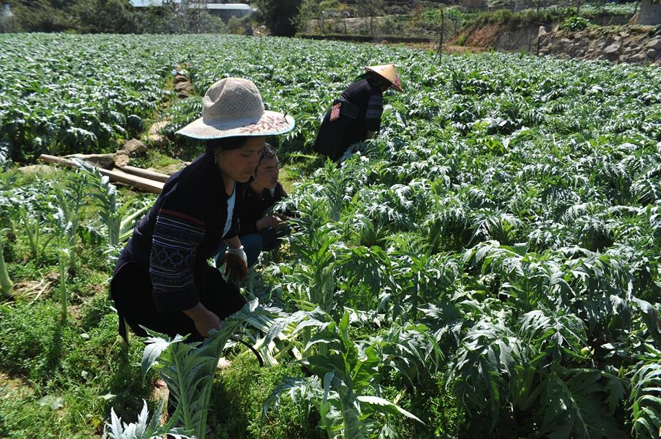 Gieo giống từ tháng 7-2017, những ngày đầu năm 2018, vườn actiso nhà anh Má A Chu đã vào vụ thu hoạch. 1 giờ 30 phút chiều, giữa cái nắng chói chang của Sa Pa, cả gia đình anh Má A Chu hối hả hái lá trên vườn actiso cho kịp chuyến xe chở về nhà máy TraphacoSapa ở Lào Cai.