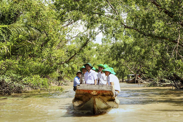 Du khách khám phá rừng phòng hộ ven biển Cù Lao Dung