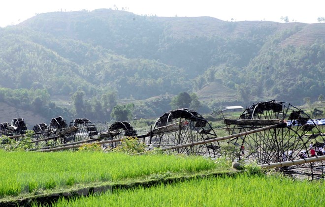 Guồng nước bên suối Nậm Mu, xã Bản Bo. (Ảnh: Quý Trung/TTXVN)