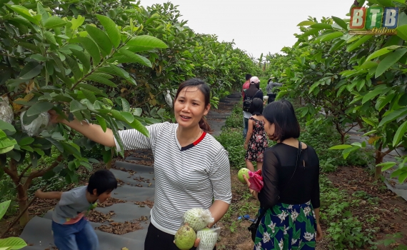 Đến thăm trang trại Surfam (xã Hồng An, huyện Hưng Hà) đúng hôm có đoàn khách từ thành phố Thái Bình về thăm, tôi mới cảm nhận được sự náo nhiệt, háo hức của các thành viên trong đoàn. Đoàn có khoảng 30 người gồm cả người lớn và trẻ nhỏ. Không cần nghỉ ngơi sau quãng đường hơn 30km, xuống xe, các thành viên trong đoàn bắt đầu tham quan, trải nghiệm các công đoạn làm việc của trang trại. Có ông bố hướng dẫn con cách cho gà ăn, cách thu hoạch trứng gà; có bà mẹ lại hướng dẫn con cách chọn và cắt từng quả ổi lê… Tất cả giống như một buổi lao động chứ không còn là du lịch.